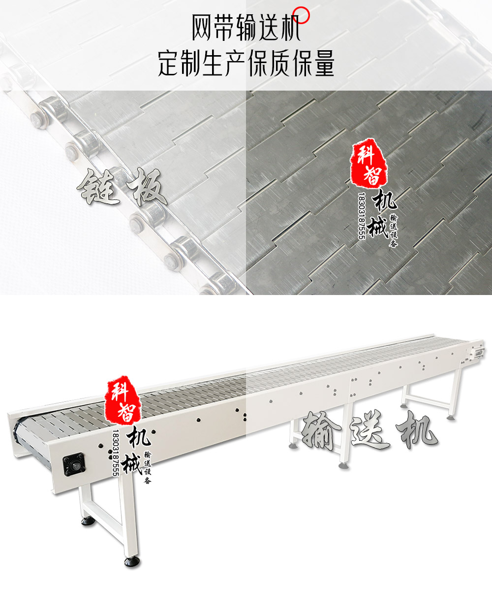 鏈板傳送帶由不銹鋼鏈條驅動,采用不銹鋼板材生產,適合用于輸送細小的高密度物件,輸送過程中運轉平穩,安裝更換方便,價格高,使用壽命較長。廣泛用于食品、罐頭、藥品、飲料、化妝品和洗滌用品、紙制品、調味品、乳業及煙草等的自動輸送、分配、和后道包裝的連線輸送等。
