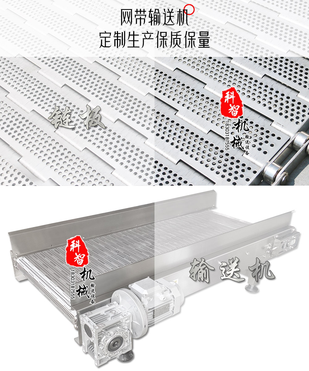不銹鋼鏈板輸送機是以不銹鋼鏈板為輸送載體,該機具有以下特性: