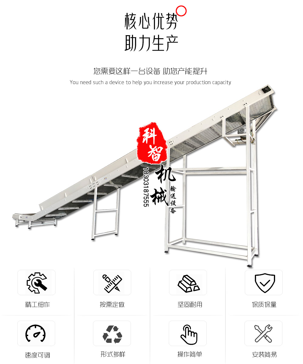 鏈板爬坡線廣泛應(yīng)用于食品、罐頭飲料、化妝品洗滌產(chǎn)品等行業(yè),它可滿足貴公司所需的自動輸送、分級包裝、耐磨、防腐、結(jié)構(gòu)簡單、運(yùn)行平穩(wěn)。