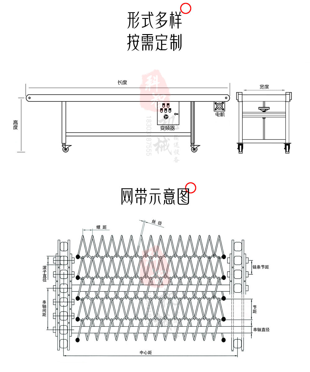 網帶定制規格: 鏈條節距:25.4mm / 31.75mm / 38.1mm / 50.8mm