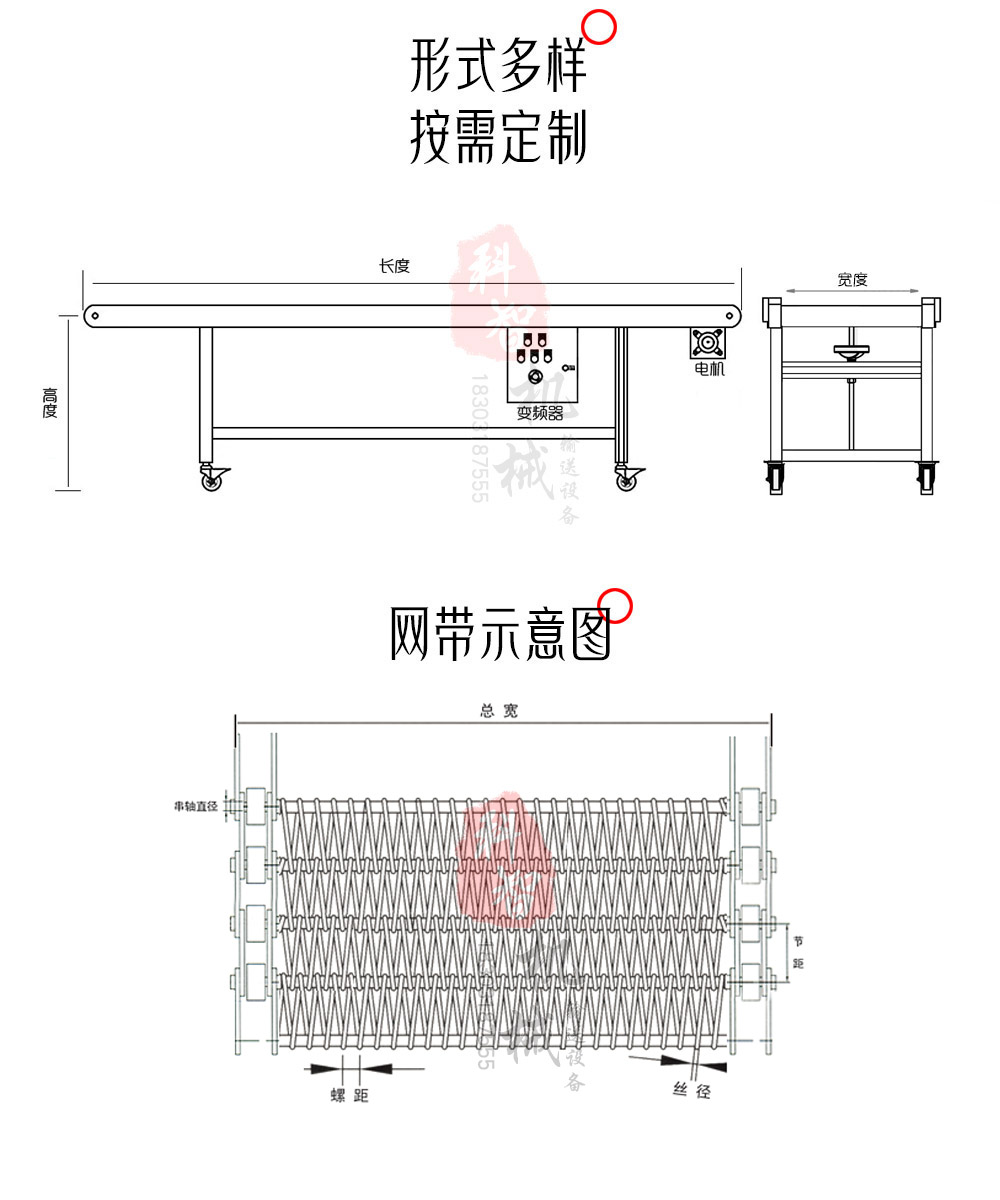 網帶定制規格: 鏈條節距:25.4mm / 31.75mm / 38.1mm / 50.8mm
